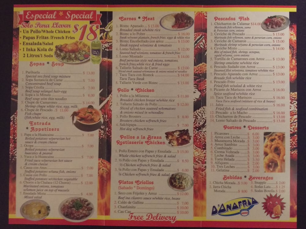 Introducing the menu at Arriba Peru, a delightful fusion of Peruvian and Chinese culinary traditions, is an unforgettable experience. Located at 5218 Bergenline Ave, West New York, NJ, this hidden gem is celebrated for its authentic dishes such as Chifa Carne de Chancho and Chifa Patos, both starting at just $18. Options like Chancho con Pina and Pato Asado con Tamarindo tantalize the palate with their unique flavors.